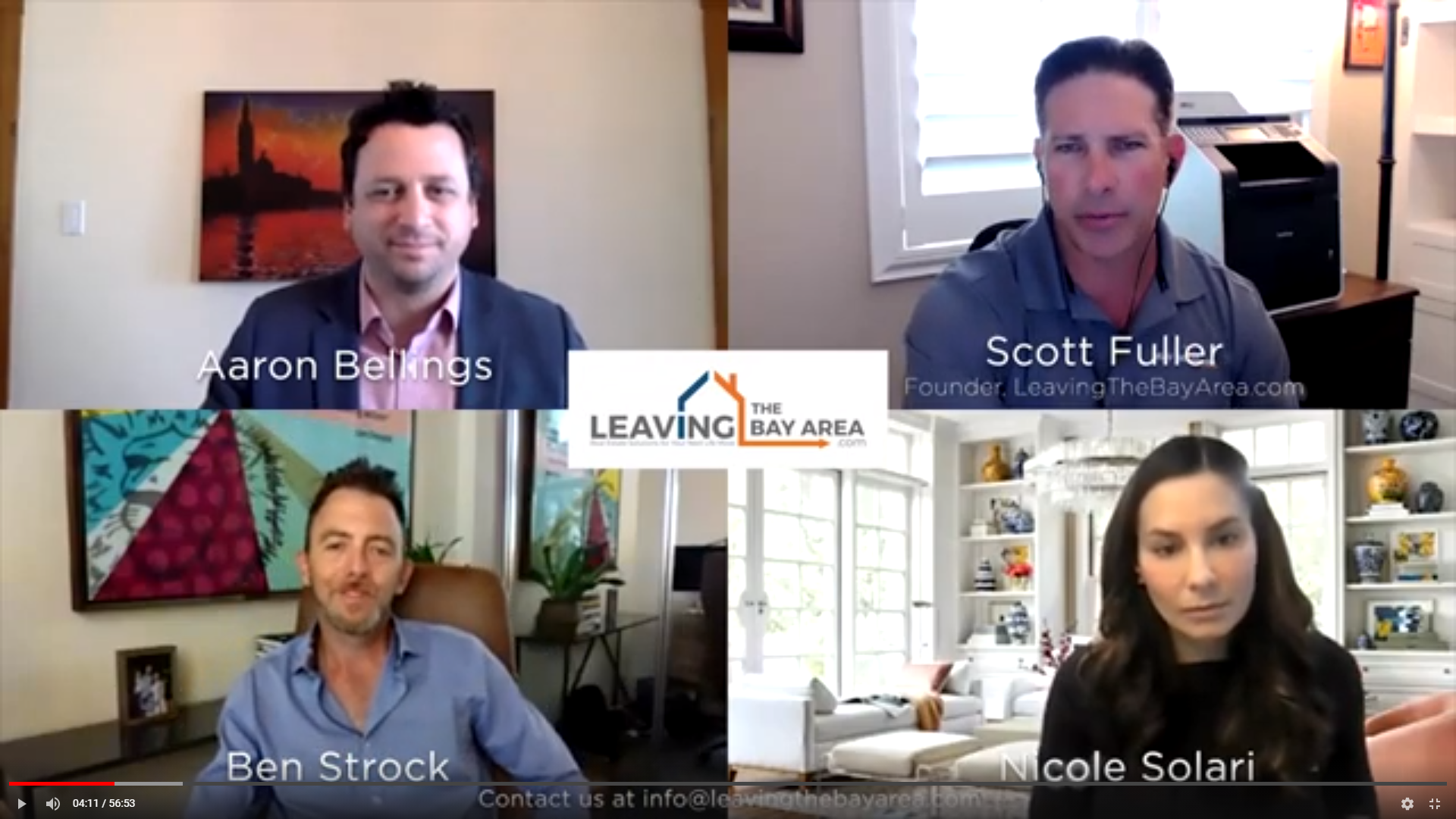 Your host, Scott Fuller, Founder of Leaving The Bay Area, interviews THREE of our TOP Bay Area real estate expert partners covering SAN FRANCISO, SOLANO, NAPA and SANTA CRUZ to discuss: